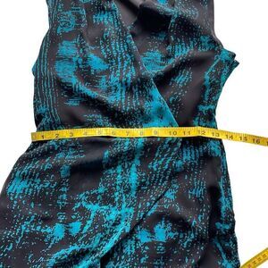 EUC Forever21 Black Turquoise Sleeveless Faux Wrap Crepe Dress Size XS