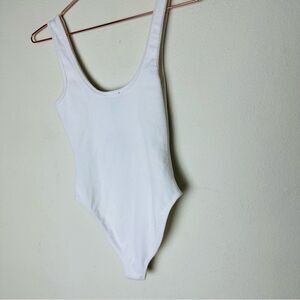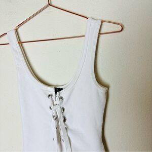 EUC Forever 21 White Ribbed Tie Front Bodysuit Small