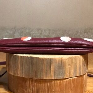 Originally retailed at $128, this purse is in excellent condition as it was only used a few times. 2 separate zippered exterior compartments and a center snap compartment adds to the slim profile of the purse.
