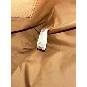 Bag is in excellent condition. Clean. Unsure if ever carried. Comes with brown leather Fossil wallet. Only known flaw is a tiny spot on the flap closure. Can be seen in photos. Possible leather conditioner takes care of it. Leaving that up to the new owner.