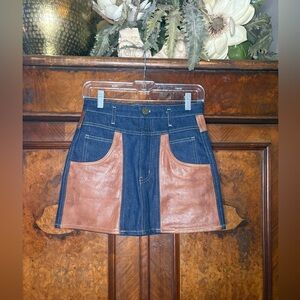 EUC Frame Atelier Denim & Leather Mini Skirt in Arlow. Size 24