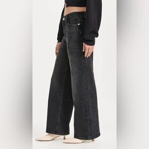 Le Pixie Palazzo Wide Leg Jeans in Kerry (Weathered Black). Super stretch denim. Wide leg fit. 77.5% cotton, 14% modal, 6% polyester, 2.5 elastane.