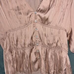 EUC Frame Pink Shirred V-Neck Blouse Size Large Retro 90s Vibe Fire Rose Summer