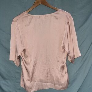 EUC Frame Pink Shirred V-Neck Blouse Size Large Retro 90s Vibe Fire Rose Summer