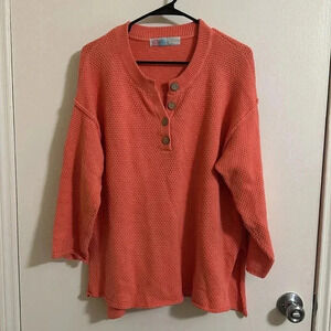 EUC Free People Beach Hailee Sweater women's orange cotton button drop shoulder