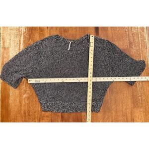 Excellent used condition Free People oversized fit black and white (for an overall gray look) 3/4 length sleeve cropped sweater, size XS. Very cute top with a round neckline and a back cut out. The oversized fit makes it cozy and comfy. This top is great for layering or wearing alone. Easy to dress up or down.
