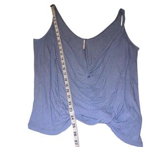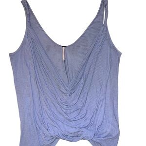 EUC Free People Ribbed Knit Double V Light Blue Twist Front Tank Top Medium