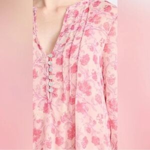 Fabric: Lightweight, non-stretch georgette Split neckline and partial button placket Long sleeves with button cuffs Pintuck details Floral print Shell: 100% polyester Optional slip with adjustable straps Lining: 100% viscose Wash cold or dry clean Imported, India Style #FREEP46045