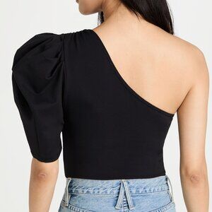 Boldly styled with an asymmetrical silhouette and a single puff sleeve, this Free People bodysuit is a striking way to freshen up your tucked-in looks.