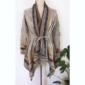 EUC Freeway Southwestern Flyaway Belted Oversized Casading Cardigan S
