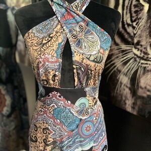 ๐๐EUC GORGEOUS PAISLEY CRISSCROSS NECK HALTER DRESS SZ M๐๐