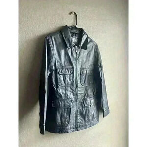 EUC GUESS Black Real Leather Jacket Motorcycle Winter Coat Size M
