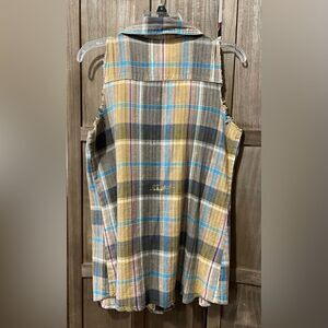 EUC Gilded Intent Raw Edge Sleeveless plaid flannel shirt.