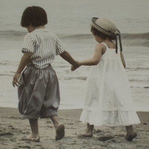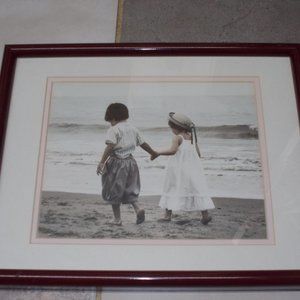 EUC, Girl & Boy walking at beach matted & framed