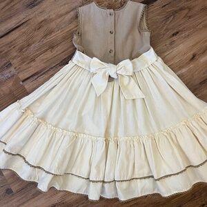 EUC Girls Tan & Ivory Linen Mustard Pie Snowflake Christmas Holiday Dress Size
