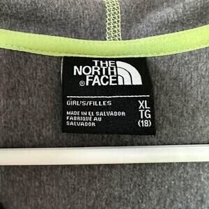 EUC Girl’s The North Face Hooded Fleece Zip Up XL 18 Gray with Green accents