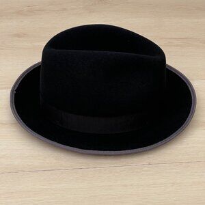 Pre-owned, gently used (only worn once, the day I bought it on a whim while having dinner in North Beach); Goorin Bros 100% Wool Feather Embellished Black Classic Fedora with grey piping accent and Castle Medallion in Men's Large (I have a massive noggin and wear men's sizes.) Approx measurements (shown in pictures) taken by hand. Retailed $230