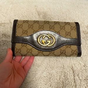 EUC Gucci Double GG Sukey Continental Long Wallet w/signature GG Supreme canvas