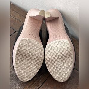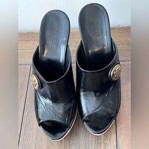 EUC Gucci Hysteria Black Patent Leather Platform Open Toe Sandals Womens size 9