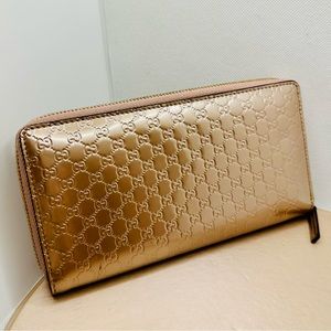 EUC Gucci Microguccissima Metallic Rose Gold Patent Leather Zip Around Wallet