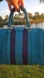 Amazing colors in this EUC, rare Gucci Boston bag. Turquoise brushed leather with navy and turquoise canvas stripe down the center. The bag has feet on the bottom. Clean interior!