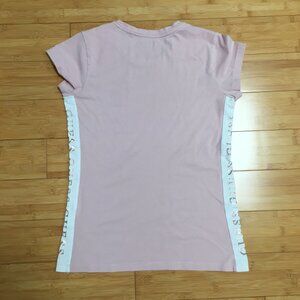 EUC Guess Factory Pink Leann Logo Stripe Crewneck Fitted Short Sleeve Tee