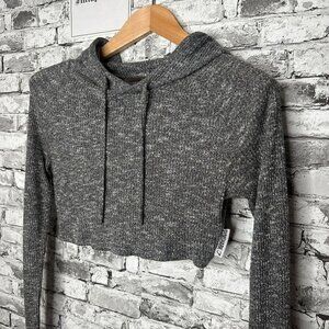 EUC Gymshark Women's Slounge Knit Crop Top Hoodie Grey Size XS Loungewear
