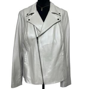 EUC - H By Halston Pearl Essence Perforated Leather Moto Jacket
