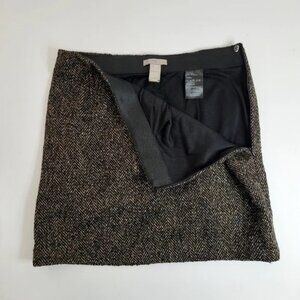 EUC H&M Brown Herringbone Wool Side Zip Mini Skirt S