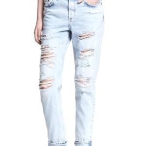 EUC H&M & Denim Distressed Ripped Boyfriend Jeans Light Wash Size 27