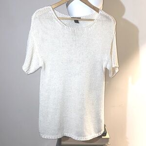 EUC H&M Lightweight Short Sleeve Scoop Neck Knit Top White Small