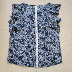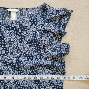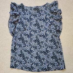 EUC H&M Size 6 Tiered Flutter Sleeve Pullover Chiffon Top Blouse Blue Floral