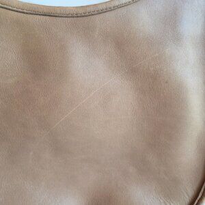 This overall excellent used condition Becket Zip is the hard-to-find color Stone, a fabulous neutral. Can be worn as a shoulder carry or crossbody. Note – there is a surface scratch on the rear of the bag as pictured. Minor marks on interior bottom. Strap can be slightly adjusted with the hole/post hardware.