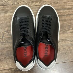 EUC HUGO Quiver Derby LT Black leather sneaker with white sole size 38
