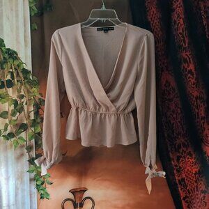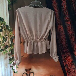 EUC: HYFVE V Sze Small Nude Blush Neck Peplum Tie Top Blouse