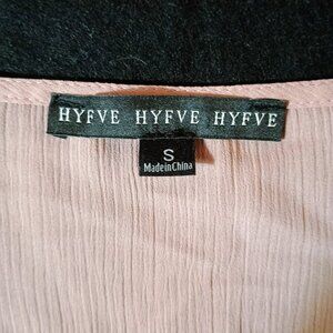Excellent Used Condition: HYFVE V Sze Small Nude Blush Neck Peplum Tie Top Blouse is beautiful and a must-have for any wardrobe. It features a flattering v-neck faux wrap front and a smocked peplum waist that accentuates your figure. The long sleeves have adorable tie cuffs, adding a feminine touch. The soft, lightweight fabric is a gorgeous nude or blush color, perfect for styling with a variety of outfits, from a night out to a professional look. The blouse is in excellent pre-owned condition with no flaws. Don't forget to bundle and save!