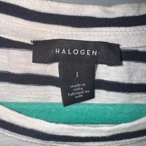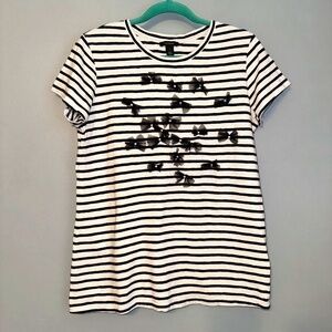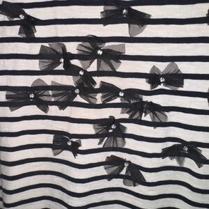 EUC Halogen Striped Tulle Bow Knit Short Sleeve Top Size Large