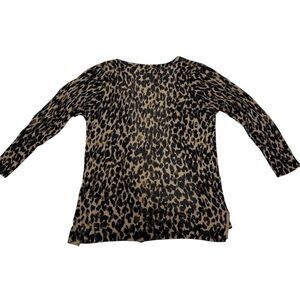 EUC Halogen Women's Leopard Print Cardigan Brown XL Long Sleeve Sweater
