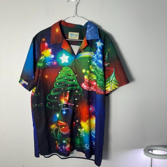 EUC Hawaiian Shirts Mens Vacation Large L Short Sleeve Christmas Shirt L Large
