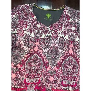 EUC Healing Hands Paisley colorful design scrub top sz medium nurse medical