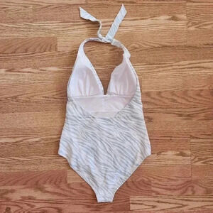 EUC Heidi Klein Zebra Print Stretch Piqué Halterneck Swimsuit, Size L
