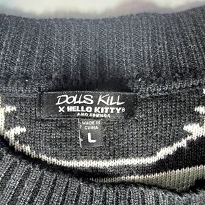 EUC Hello Kitty Dolls Kill Distressed Black and White Striped Sweater Size Large