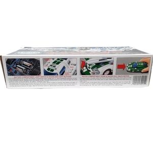 Features combo of toy truck and race car, battery compartment and light switch for each vehicle, sound and light feature buttons, ramp operation and sound feature, race car pull-back motor and sound feature, Hess Gasoline 2011 Christmas Toy.