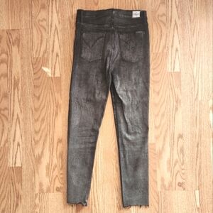 EUC Hudson High Rise Bullocks Jeans in Lace Up Super Skinny, Shiny Metallic Silver Black, Size 28.