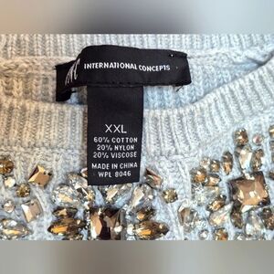 y2k bedazzled bejeweled deck the halls sweater back to school international concepts INC bell sleeve flare sleeve grey business casual