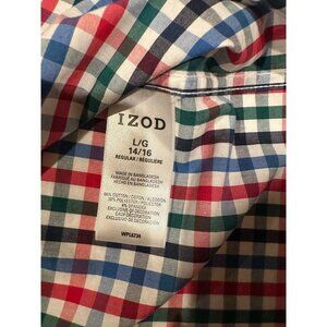 EUC IZOD Boys Button Down L/S Holiday Christmas Dress Shirt Plaid Large 14/16