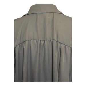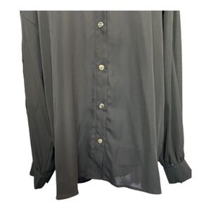 Excellent used condition Intempo women’s long sleeve button-up blouse in classic black with elegant gold buttons down the front and at the cuffs. Features subtle gathering at the upper back for a flattering, feminine fit. Perfect for business casual, evening outfits, or polished everyday style.
