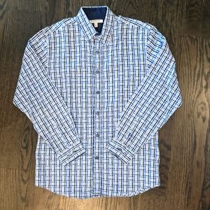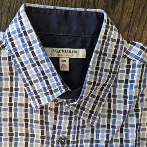EUC Issac Mizrah Blue Checkered Patterned Button Front Dress Shirt XL