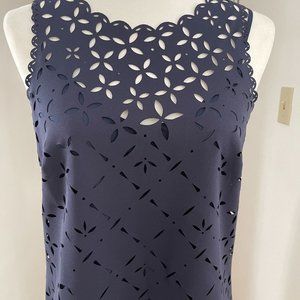 EUC J. CREW Women's Laser Cut Navy Floral Shift Dress