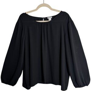 EUC J Crew Blouse Woman's sz 22 Dressy Black Sheer Peephole Tie back